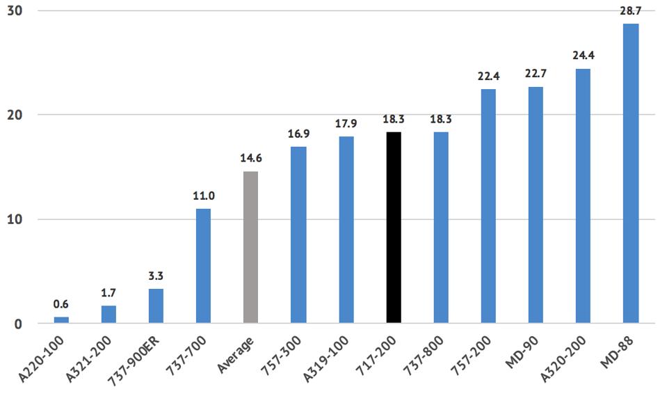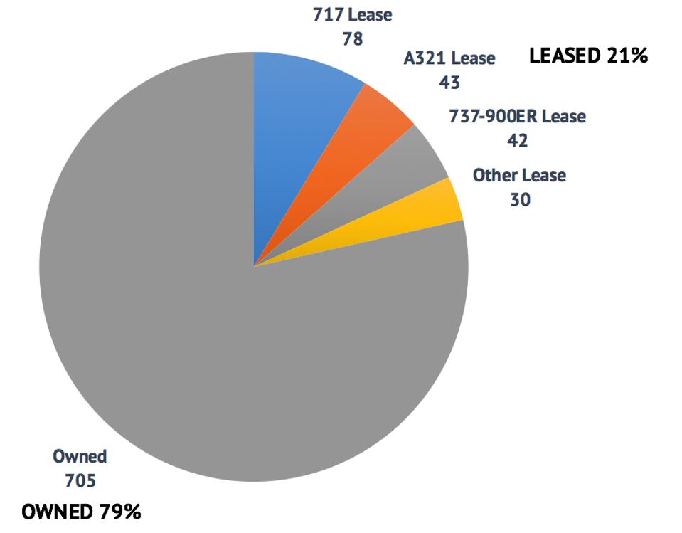 majdnem ugyanolyan korú, mint a 717 a Delta A319s és 737-800s. megtartva ezeket a repülőgép olcsóbb tulajdonosi szempontból, mivel Delta tulajdonosa szinte mindet: 73 a 77 737-800S és 55 az 57 A319s., Mivel a Delta tulajdonosa ezeknek a repülőgépeknek, és nem elkötelezett a fix bérleti időtartamok mellett, szabadon visszavonhatja a repülőgépet, amikor azt akarja – ellentétben a 717-esekkel.