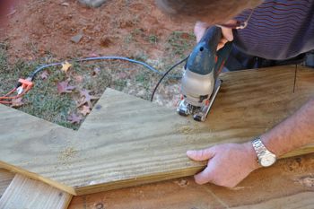2. Utilizzare una sega circolare per tagliare le sezioni superiore e inferiore del pungiglione scala e ogni passo.